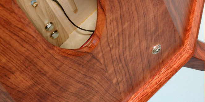 The pickup is discreetly mounted inside the soundbox, invisible to the audience. A single jack mounted on the back of the harp makes for "plug and play" ease of use. An instrument cable (not included) connects your harp directly to any amplifier and most PA systems. In most situations a preamplifier is not needed, but if you are playing in situations requiring very high volume, you may want to add one. In addition to boosting the signal, it will give you direct control over your volume and tone. With some amplifiers, a preamp can also sweeten and smooth out your sound.