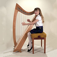 The Sierra 34 harp is our most popular harp for the younger student. When buying a harp for a child, you need to consider their right arm being able to reach around the top portion of the neck and body. They should be able to reach the top register of the harp easily for their comfort and to be able to progress.