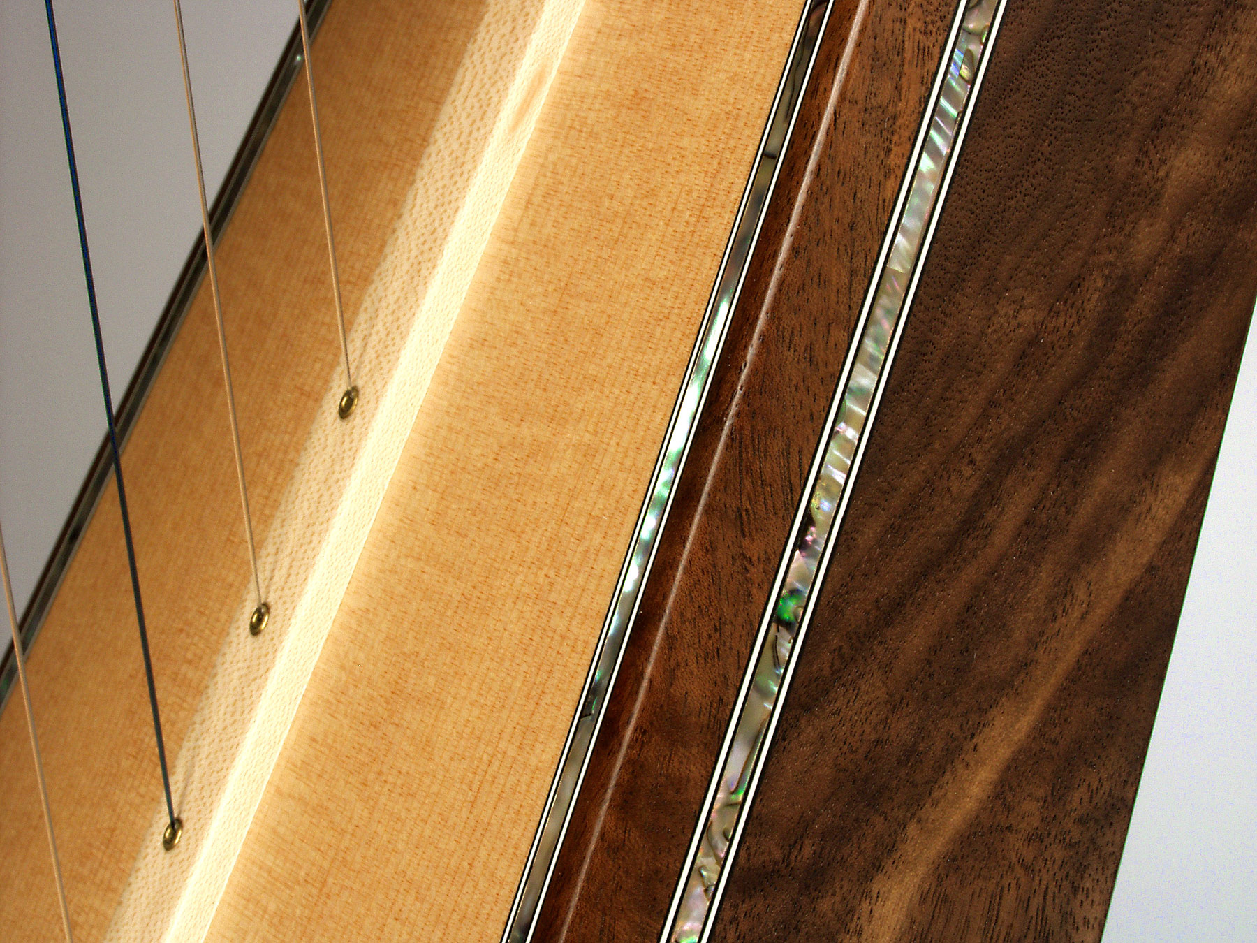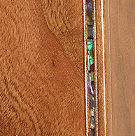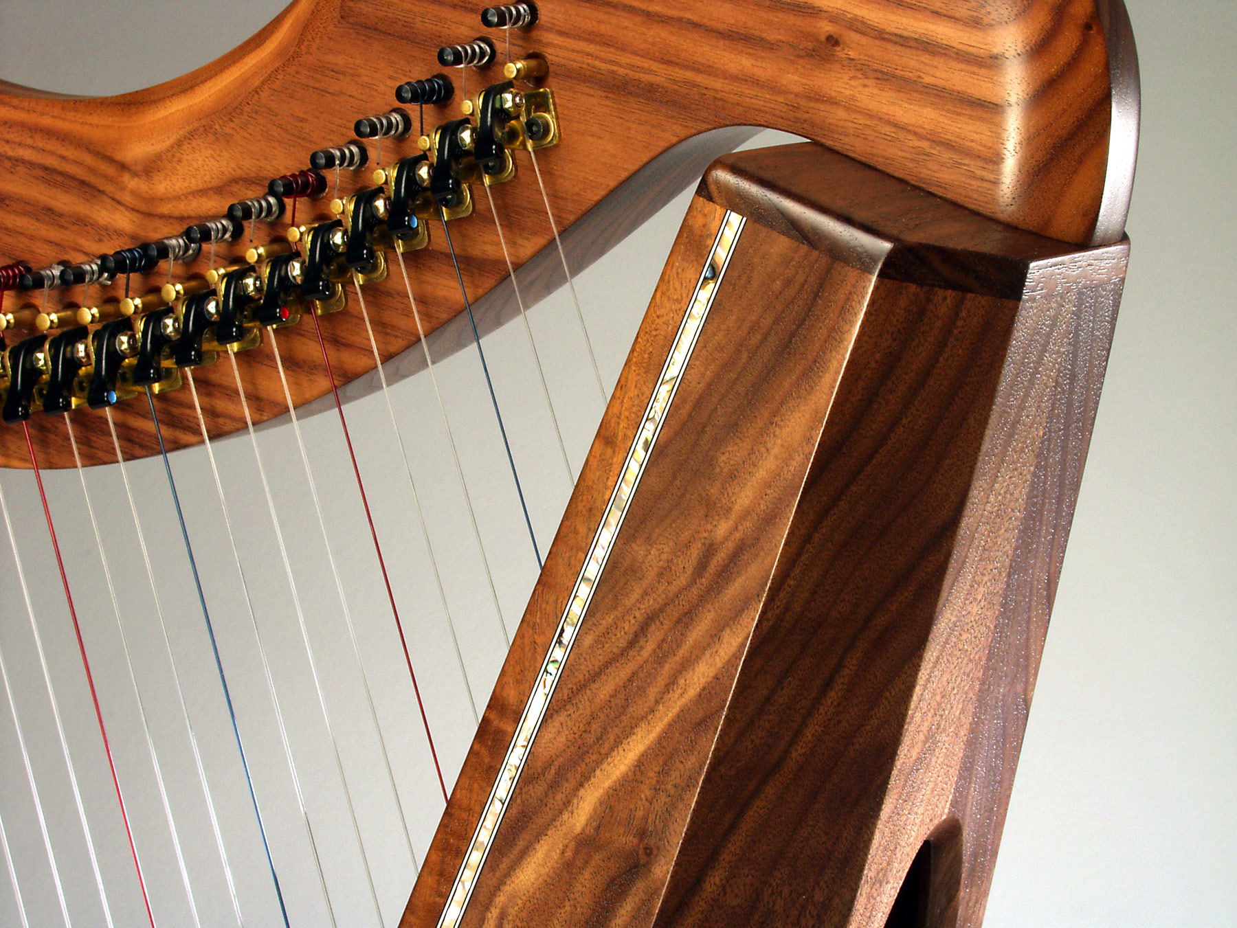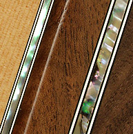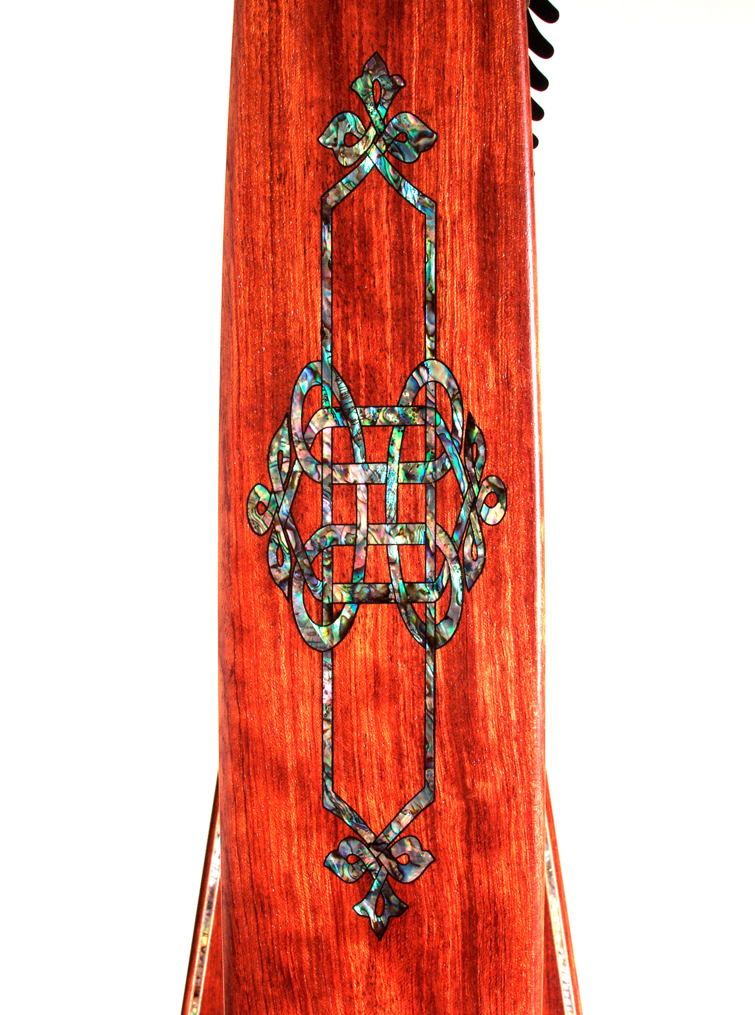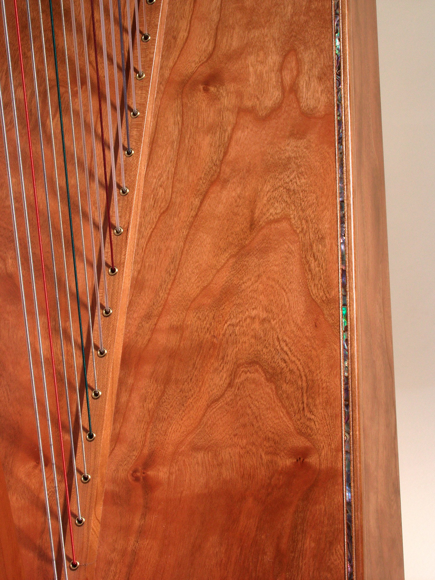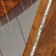 Single abalone binding along the side of the harp- This delicate detail makes the wood of your harp look even more exquisite. This detail can be added to most models except the Christina model. Price $400.00