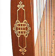 This enhancement can be added to any harp that has a neck cap (Celtic, Catalina and zephyr models). Look to the Abalone section to see this same design inlaid with abalone. Price $50.00