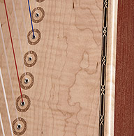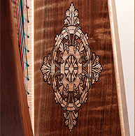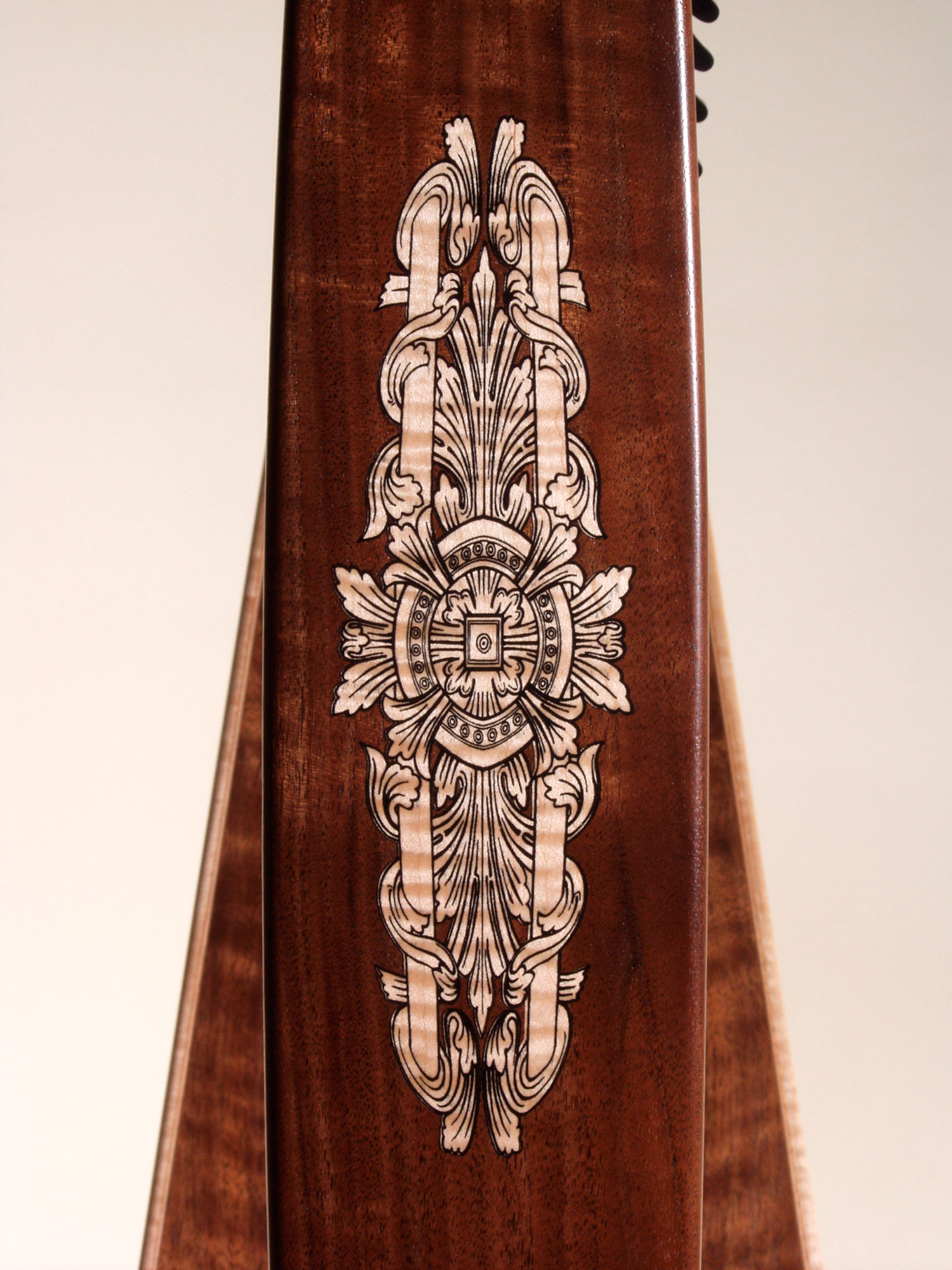 This beautiful detail can be added to any harp with a fore pillar. Look to the Abalone section to see this same design inlaid with abalone. Price $250.00