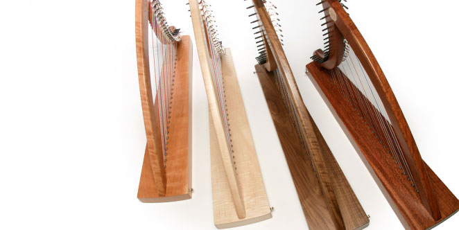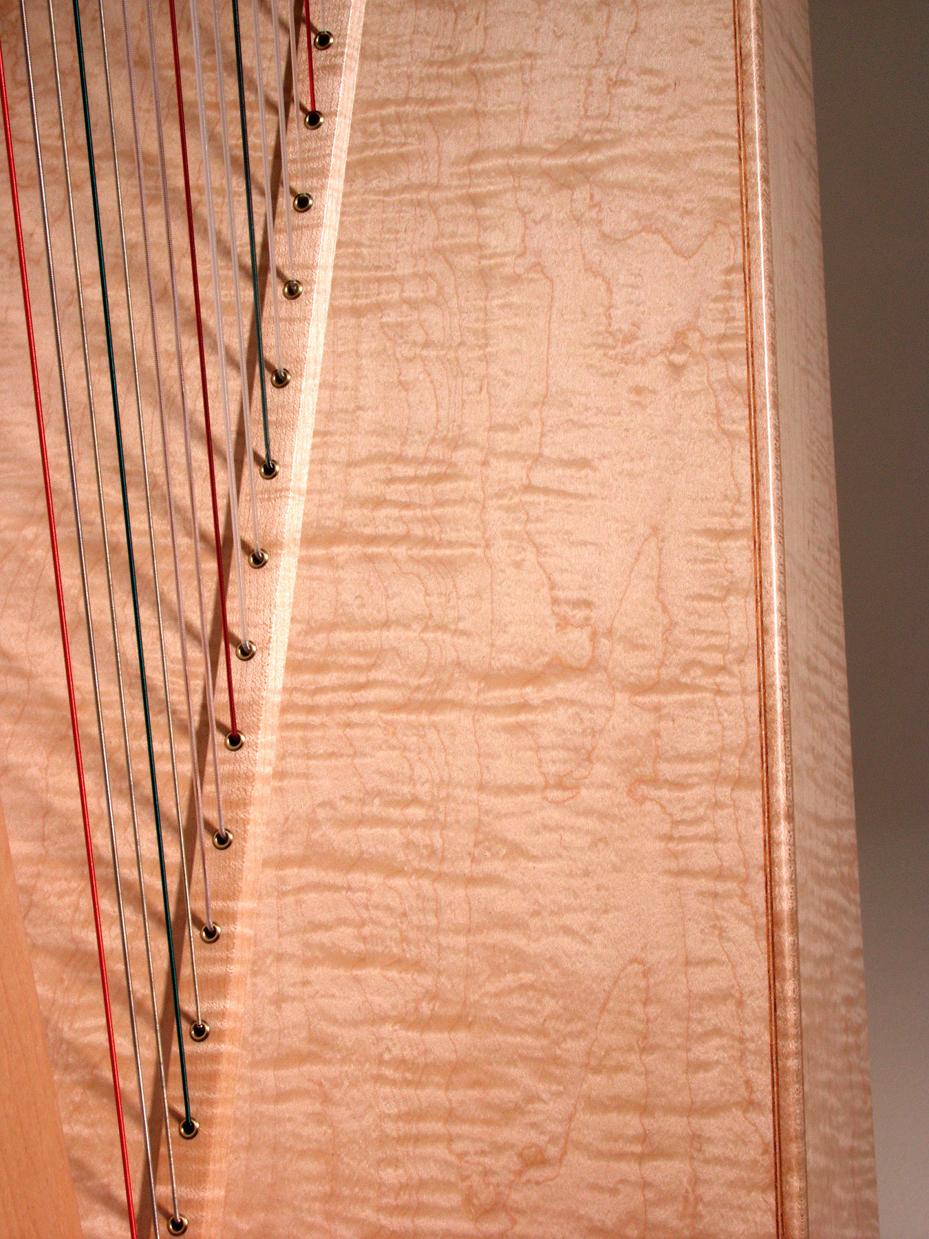 The harps that are shown here have matching soundboards, many people opt for the contrasting maple soundboards which you can see more of when looking at the specific harp models.
