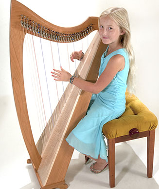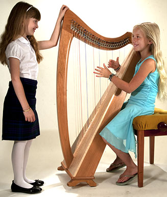 If you are looking for the smallest of the free standing harps with an easy reach, this harp is your dream harp. Very portable, yet it still stands on its own feet so you don’t have to worry about a bench or stand.