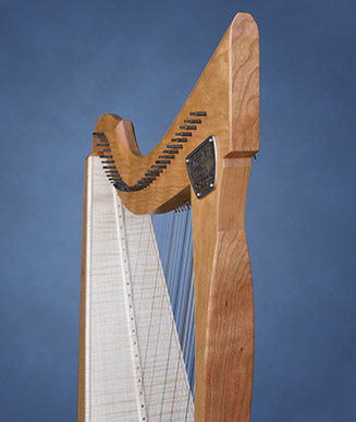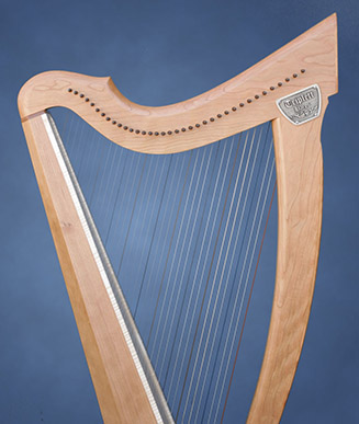 We decided after many years of great success with the Celtic 34, to model a 36 string harp using the same lovely design features. The Silhouette is designed to celebrate 40 years in business, taking into account the size, sound and exquisite lines of the Celtic. With 2 additional strings at the top, the 36 string range is desired by many harpists. Since the fluorocarbon strings do sound best in the mid range, this harp is designed for a mix of nylon, fluorocarbon and base wire strings. The Silhouette, like the Celtic, has a forepillar and a neck "cap" which works well for our custom laser and carved enhancements.
