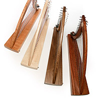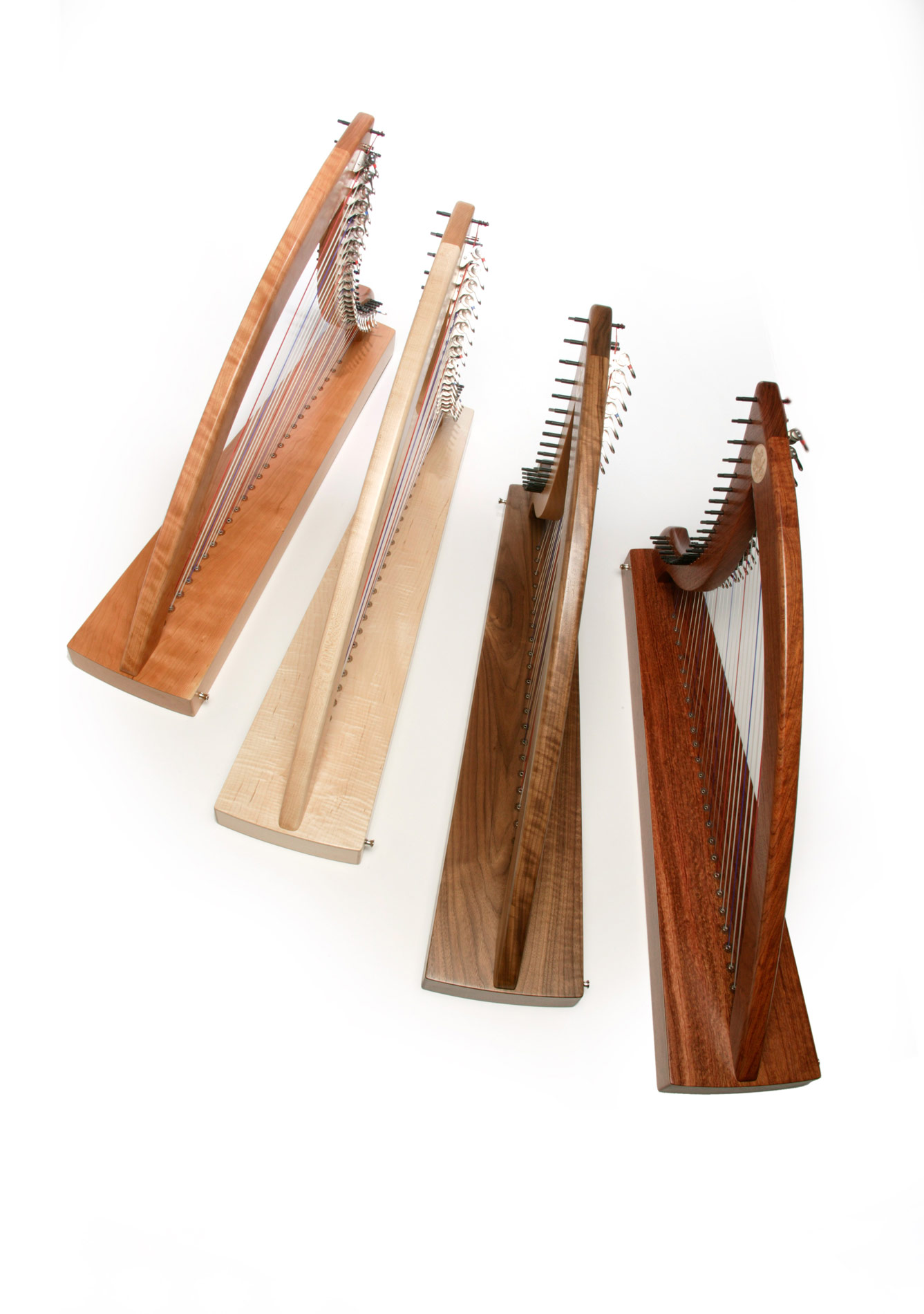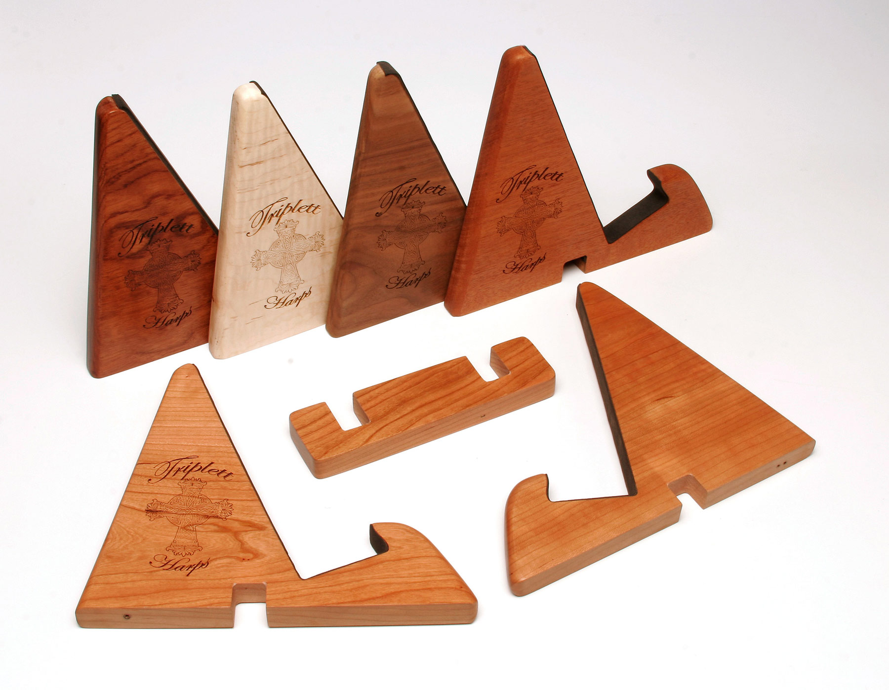 The matching foldable stands are made to display your harp. These stands are color coordinated to match the color of your harp. Stands made with Cherry, Maple, Walnut or Sapele cost $150 while those made with Bubinga Wood are $185.